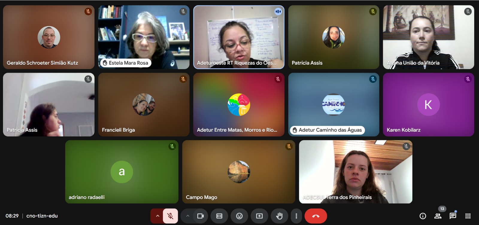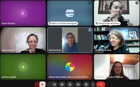 16/05/2025 - Reunião online das Instâncias de Governança Regional para definição de abordagem sobre novo termo “territorialidades” e discussão. Participaram de forma online a consultora Estela Mara Rosa e a interlocutora Regional de Turismo Jenniffer dos Santos Mangrich.