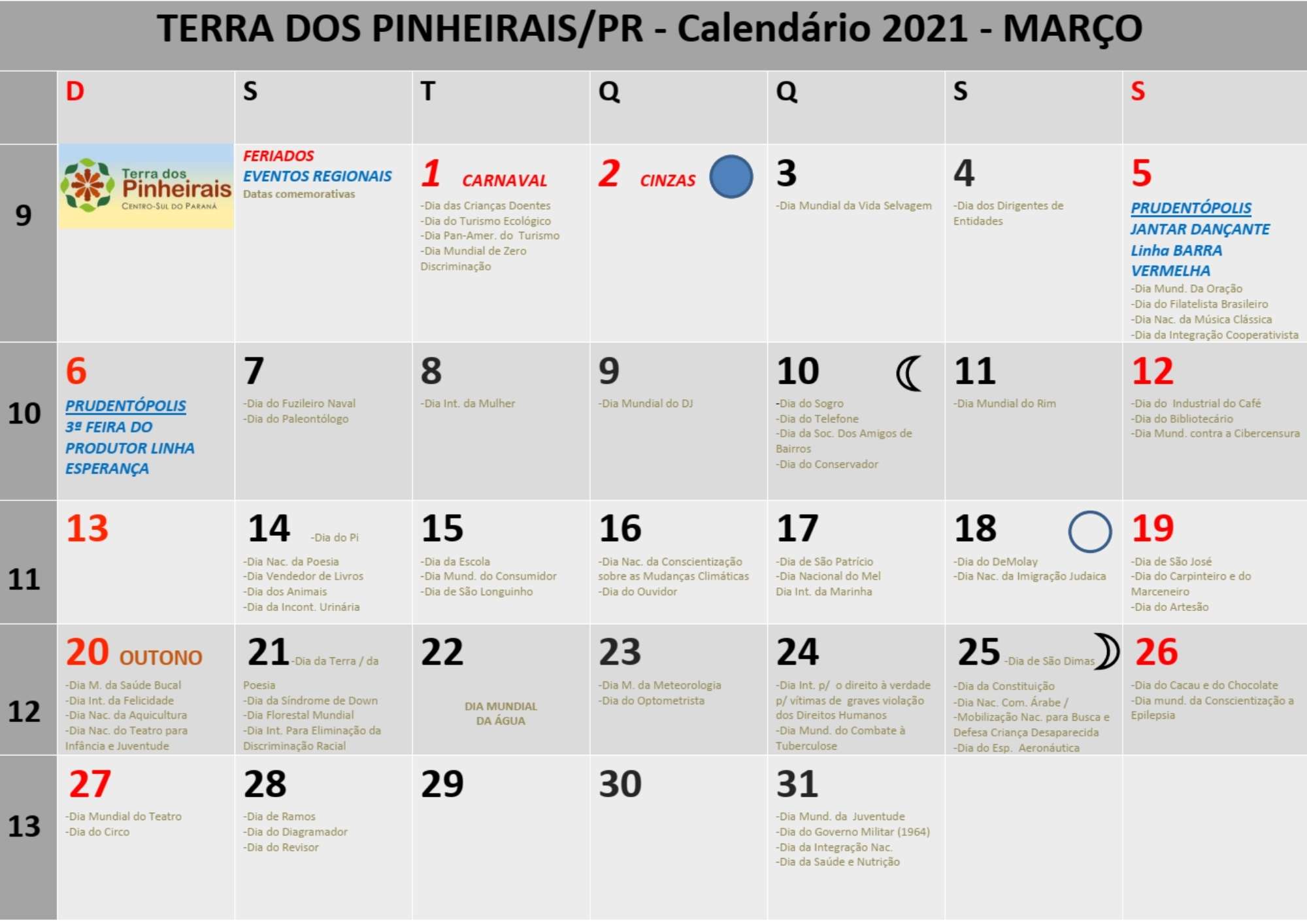 Estamos com um novo calendário de eventos dos onze municípios da Terra dos Pinheirais.